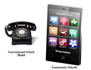 Most people think of schools today as serving a single purpose: a binary, analog-system of delivery – teachers teach and students learn. Community schools are more akin to smart phones. Schools and communities connect, collaborate, and create. Children and families have an array of supports from community partners right at their school. Communities and schools leverage their shared physical and human assets to help kids succeed.